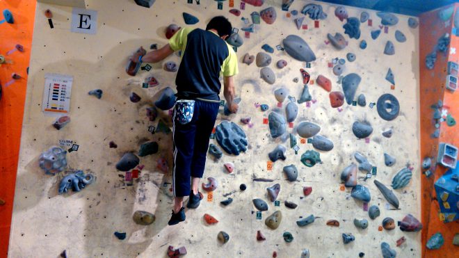 奥さんはもう一つ調子が出ないようで、前回サクッと登れた 5.9 に苦戦。 5.8ルートも途中で2回ほど休憩しながら登っており、まぁ3歩進んで2歩下がるみたいな感じのようです。その後は掘りごたつエリアのピンク課題を数本。きょうは赤テープさわらずにお仕舞でした。