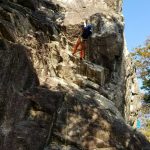 なぜ?いまごろジャスティスかというと完全な初心者だった数年前のトライで凹んでしまい、それ以来登らずにRP取りそこなっていたのが主な理由かも。山岳会に入っているのに「槍ヶ岳登ったことないです」といまさら言いにくいのとおんなじ感覚というか・・・。とにかく、そういえば登ってないなぁ?じゃやっておきましょ!的な感じで取り付きです。